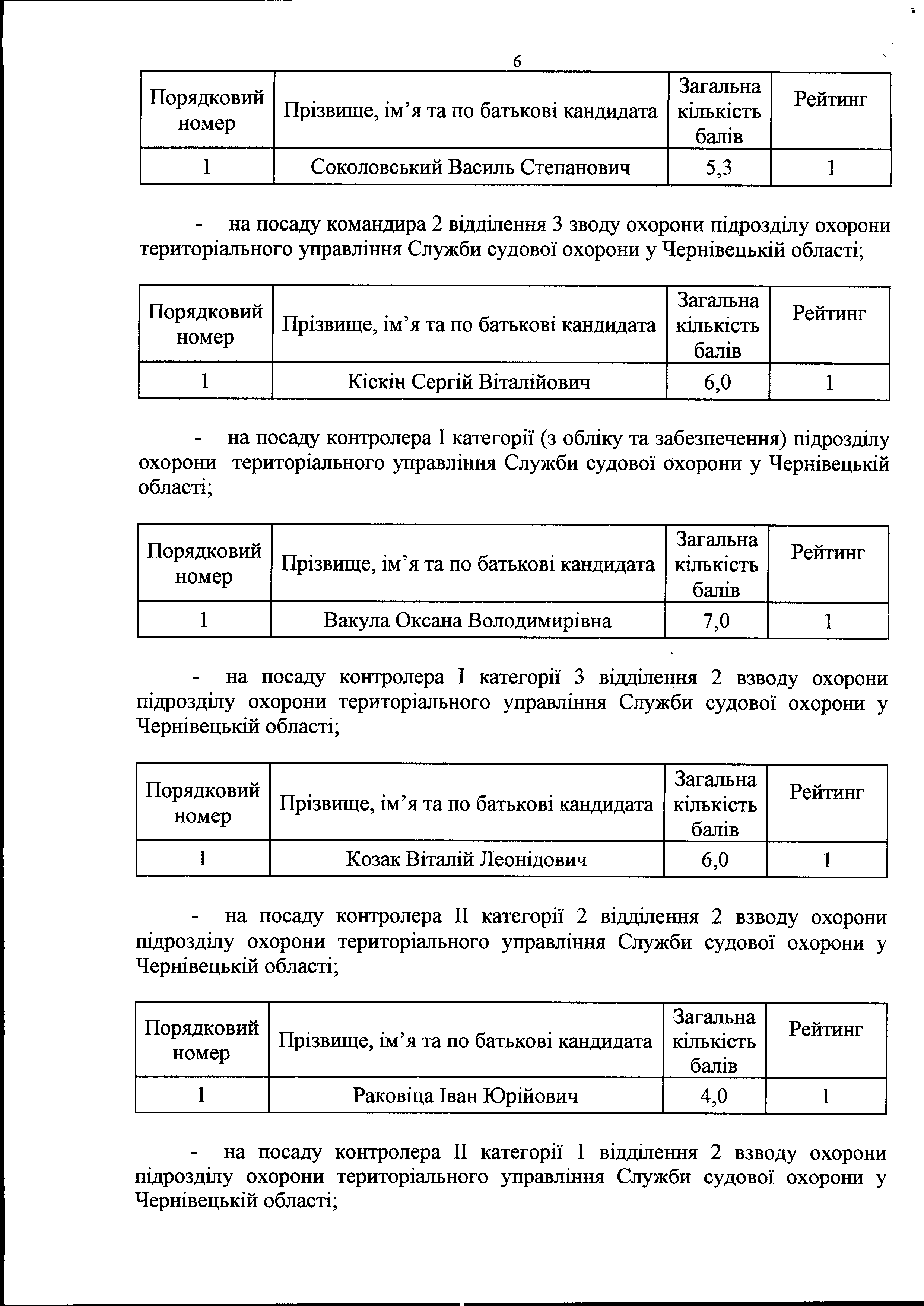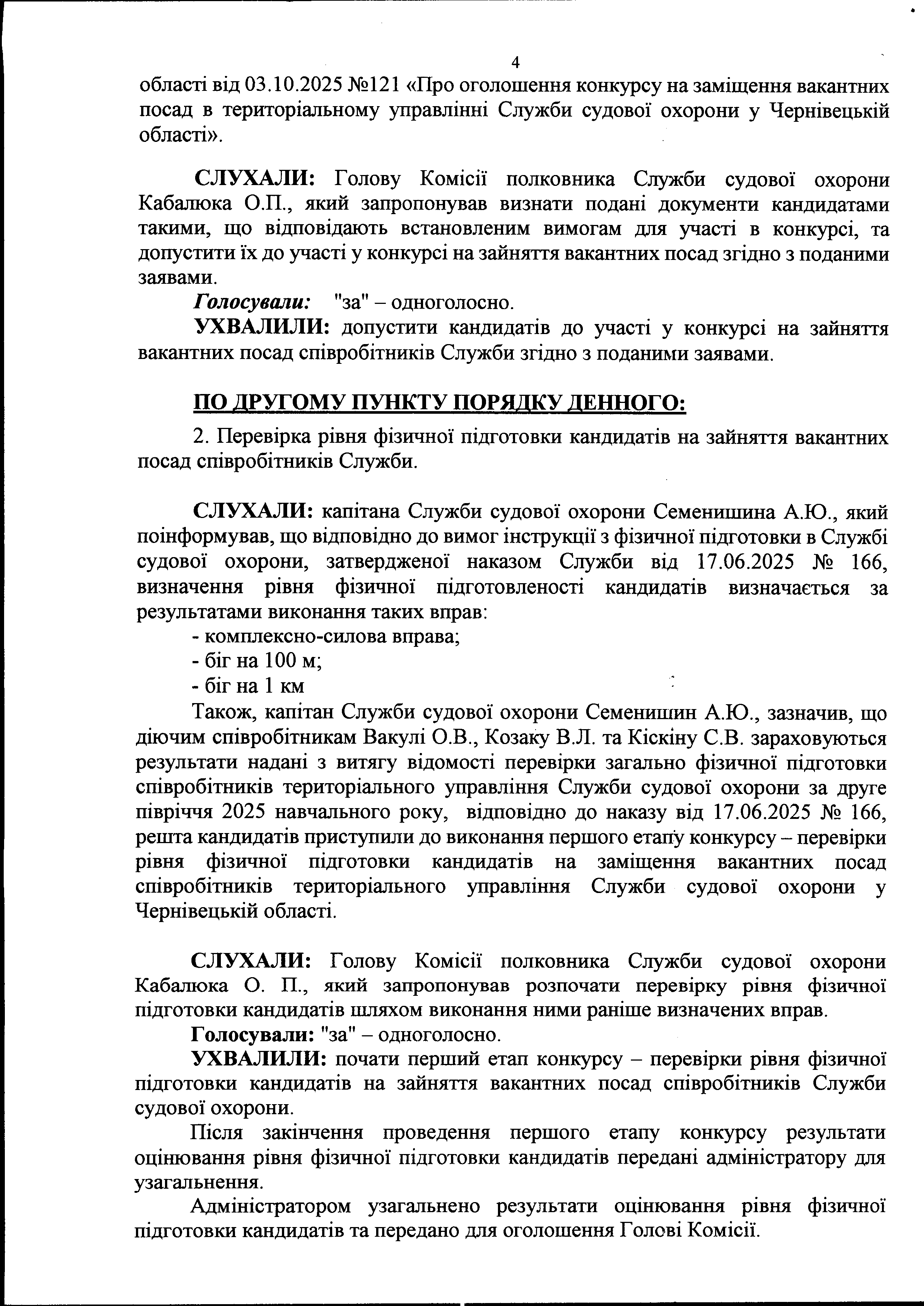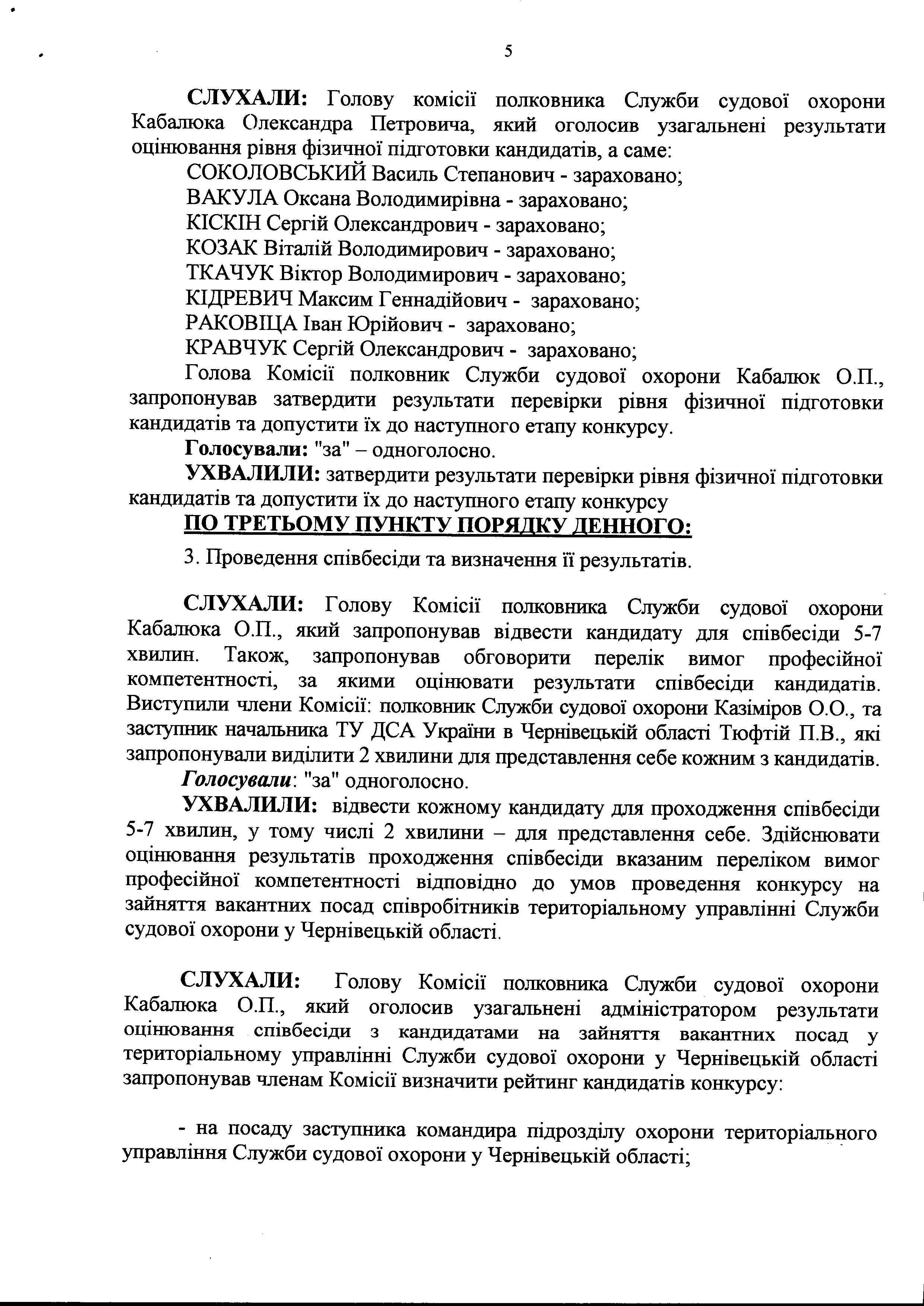 ПРОТОКОЛ №7 засідання комісії для проведення конкурсу на зайняття вакантних посад у територіальному управлінні Служби судової охорони у Чернівецькій області від 17 жовтня 2025 року