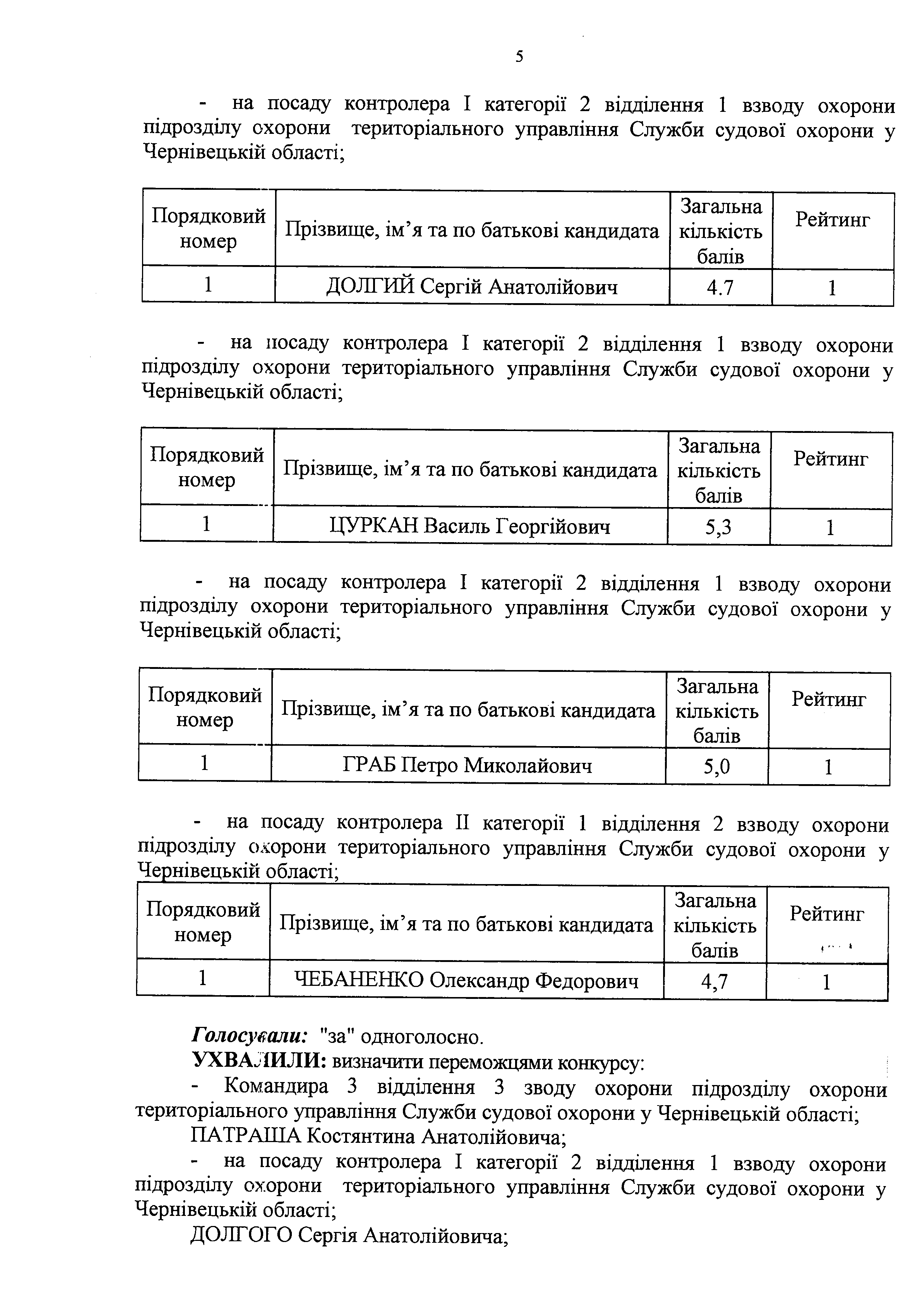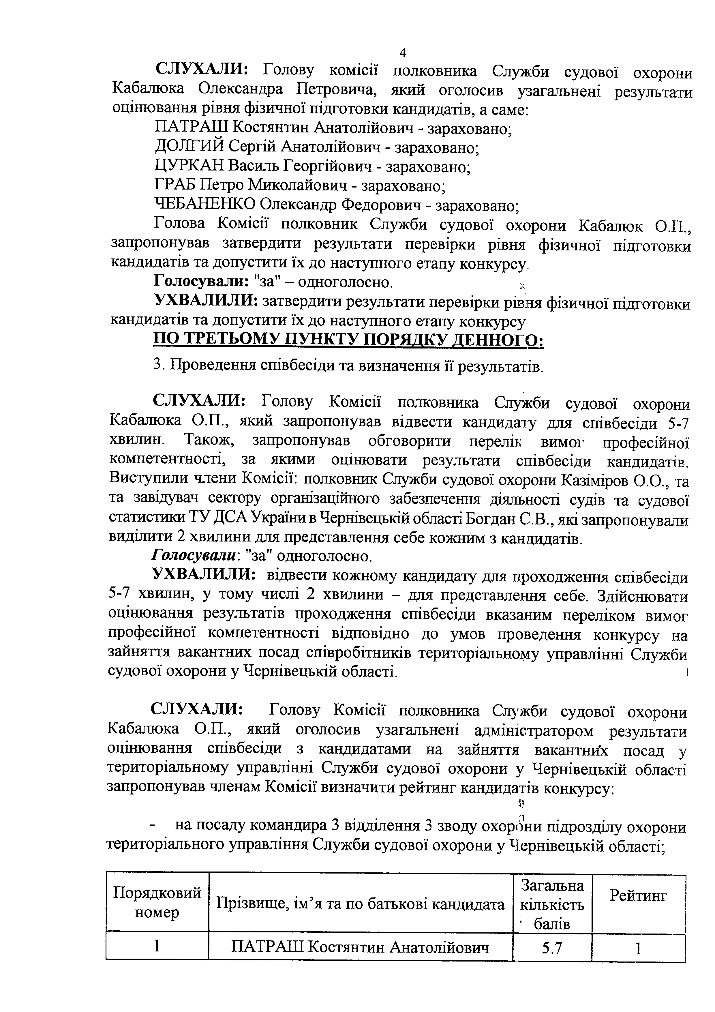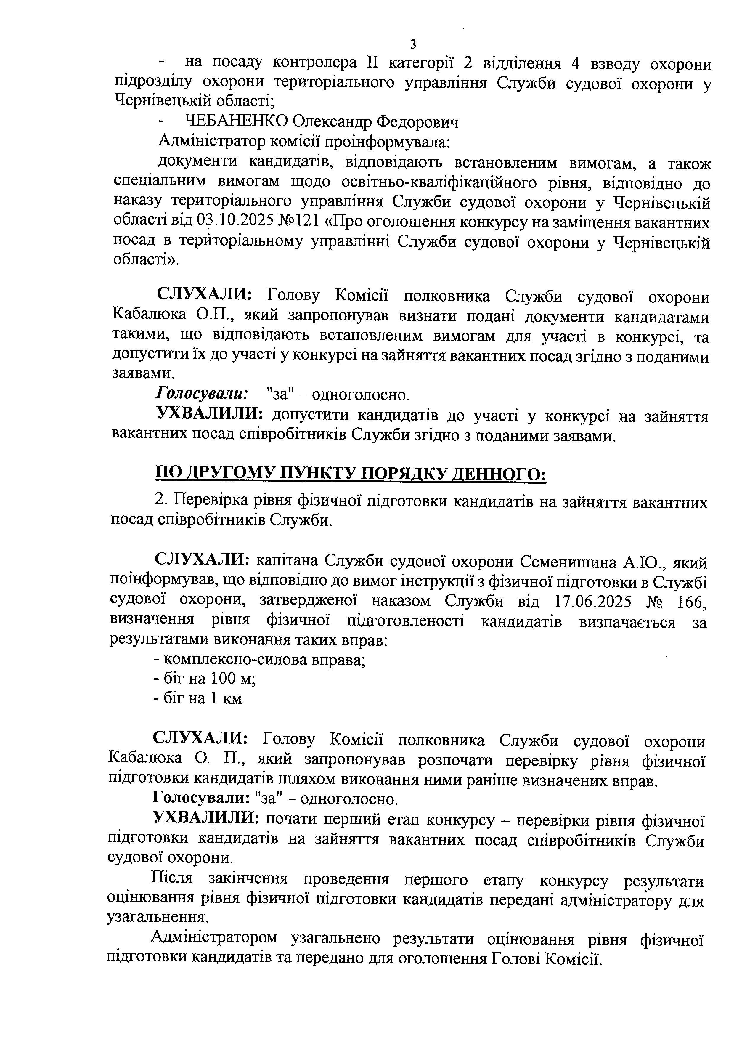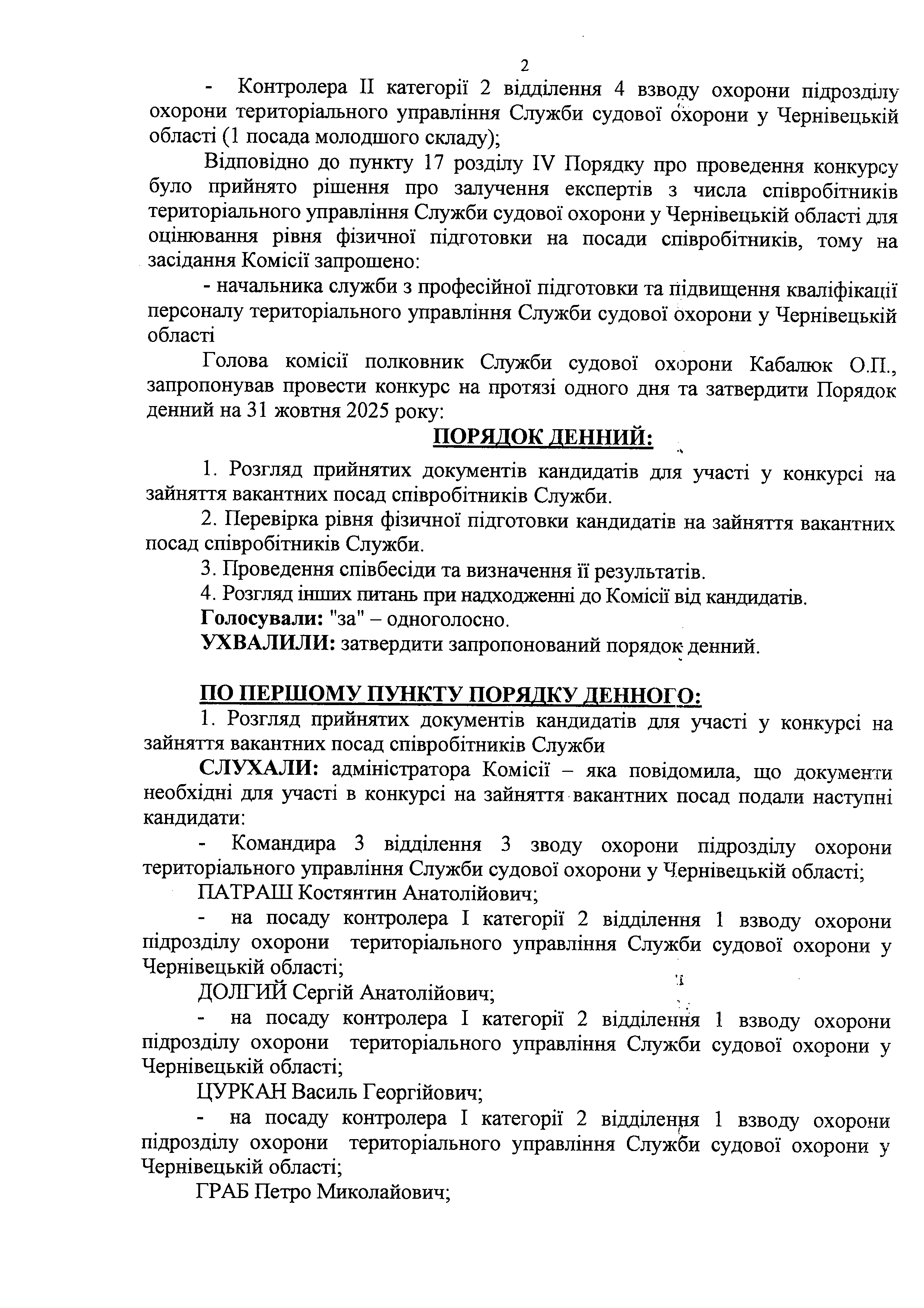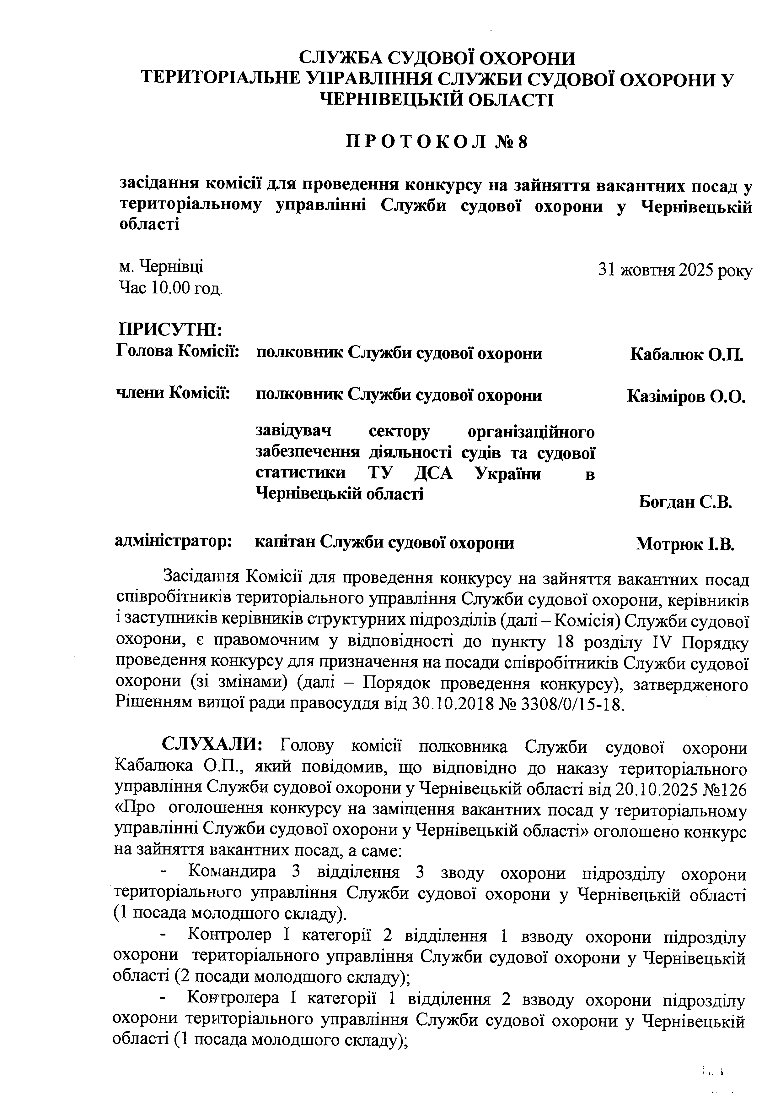 ПРОТОКОЛ №8 засідання комісії для проведення конкурсу на зайняття вакантних посад у територіальному управлінні Служби судової охорони у Чернівецькій області від 31жовтня 2025 року