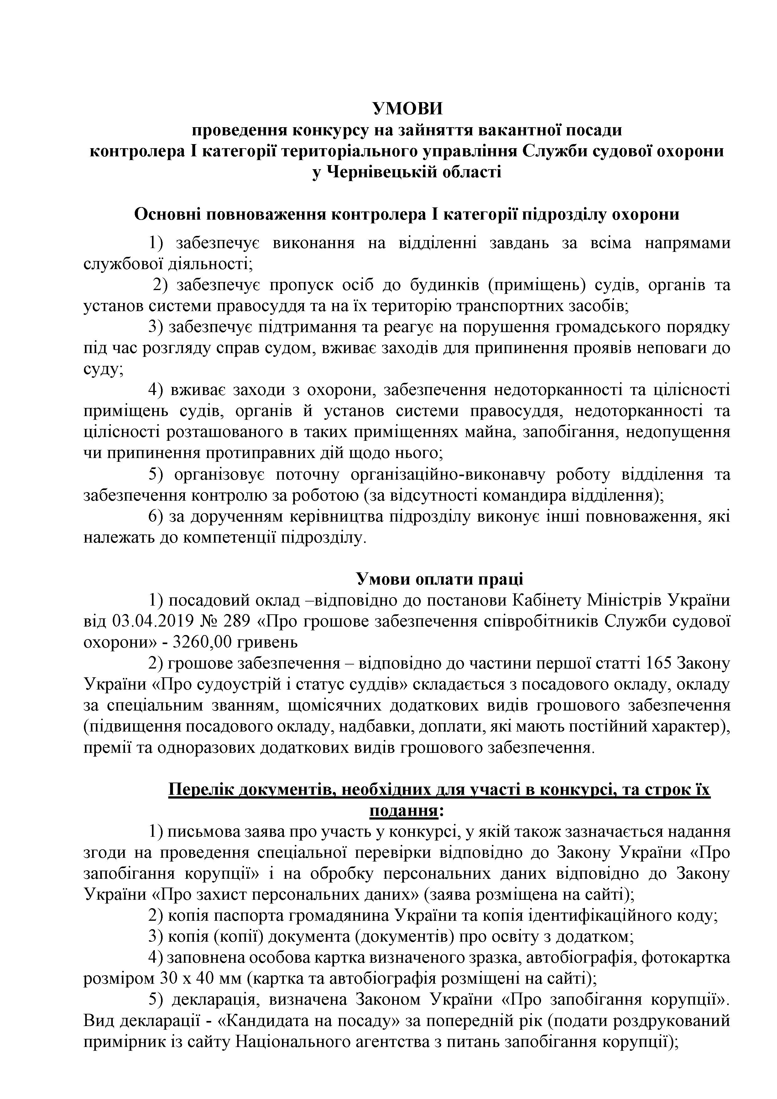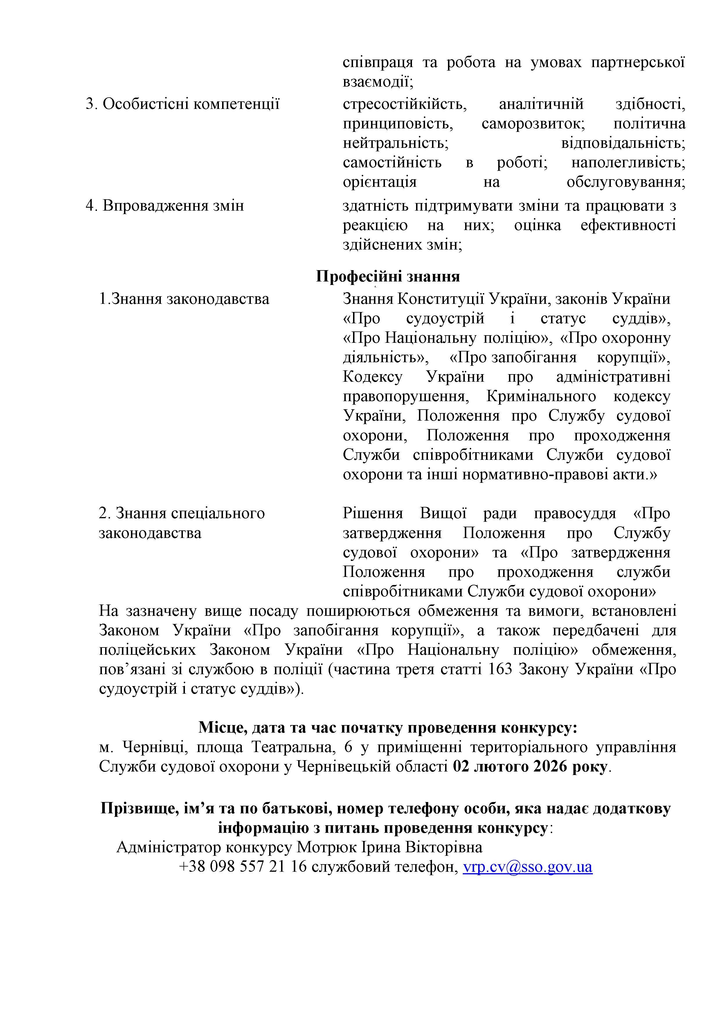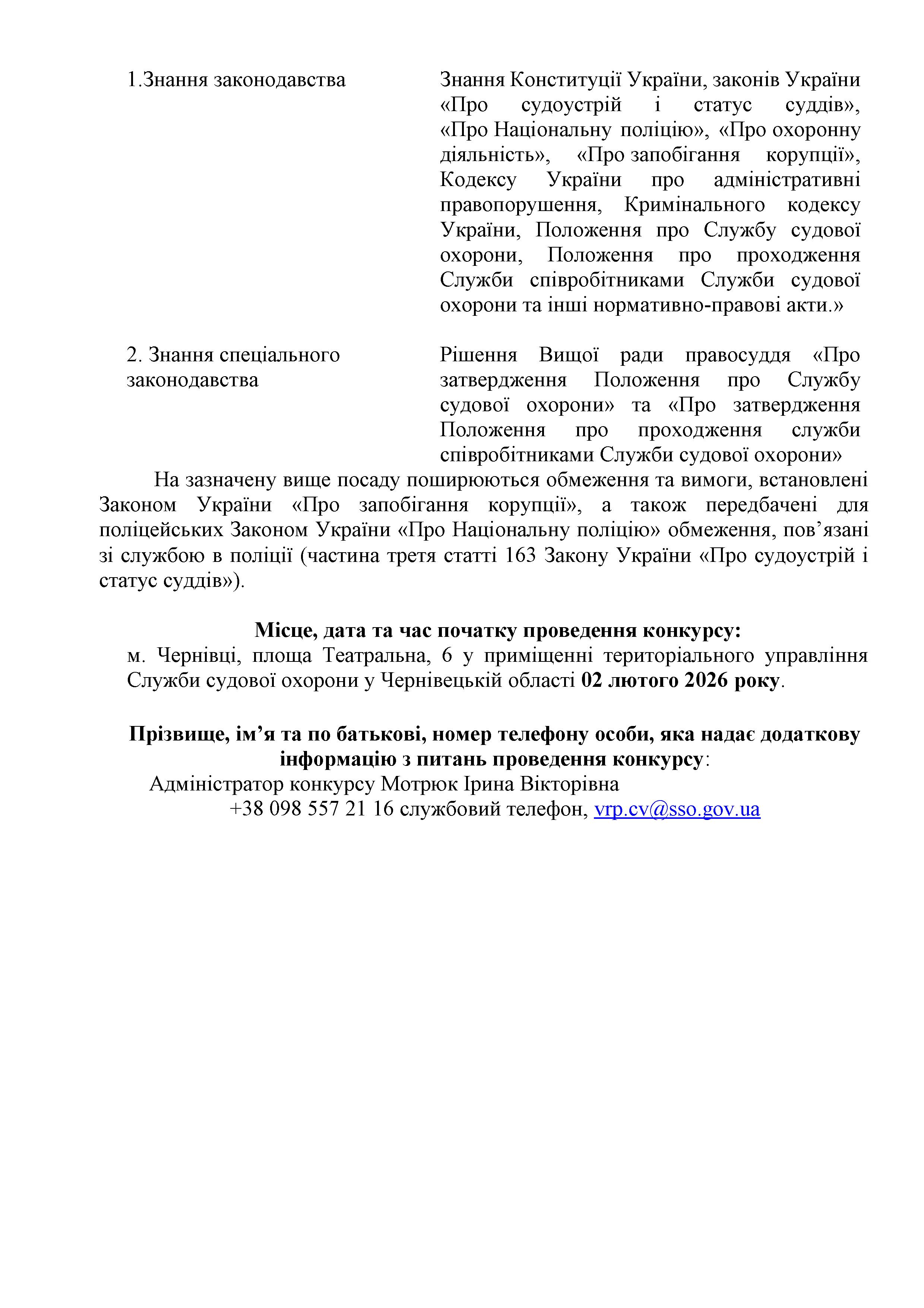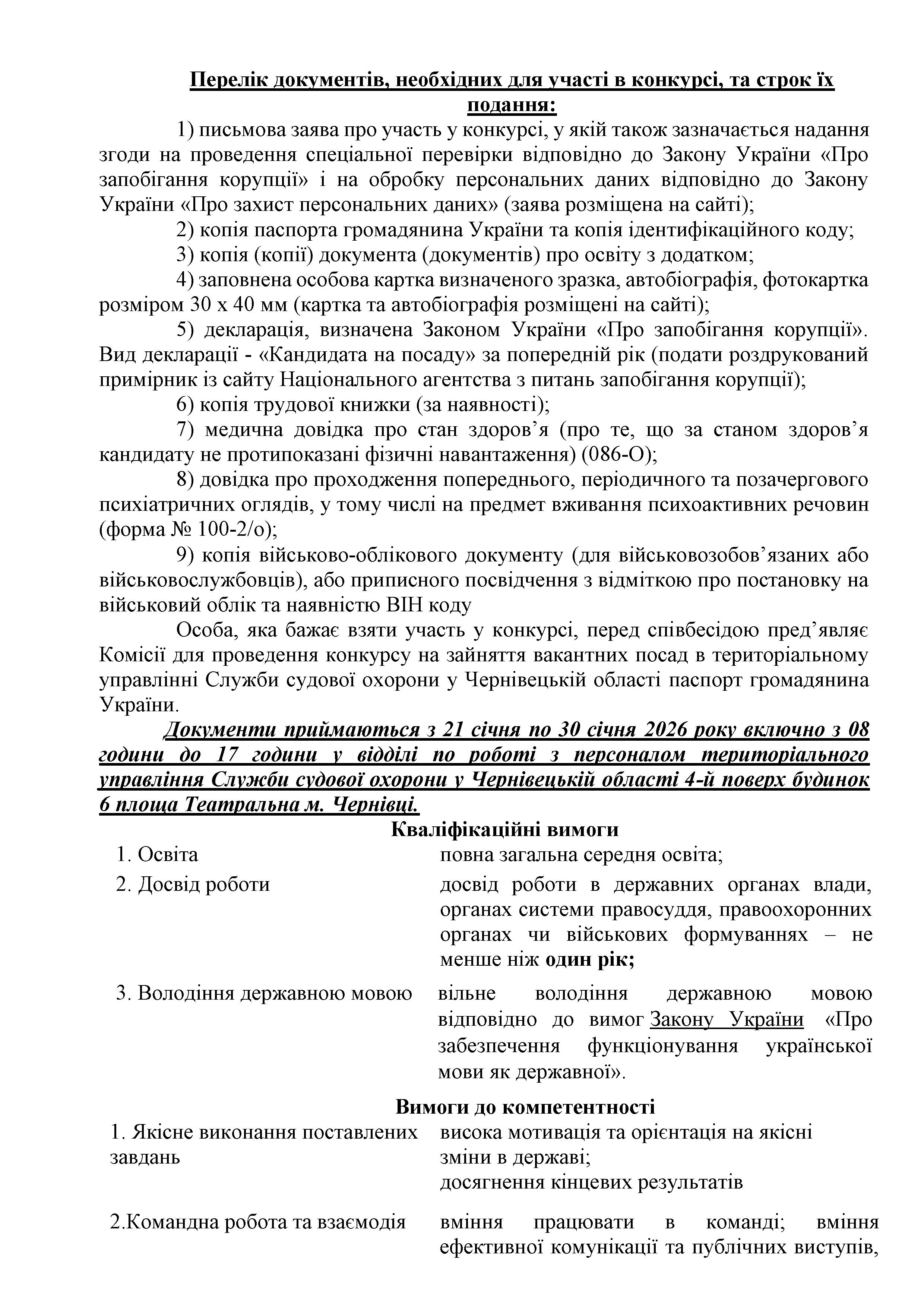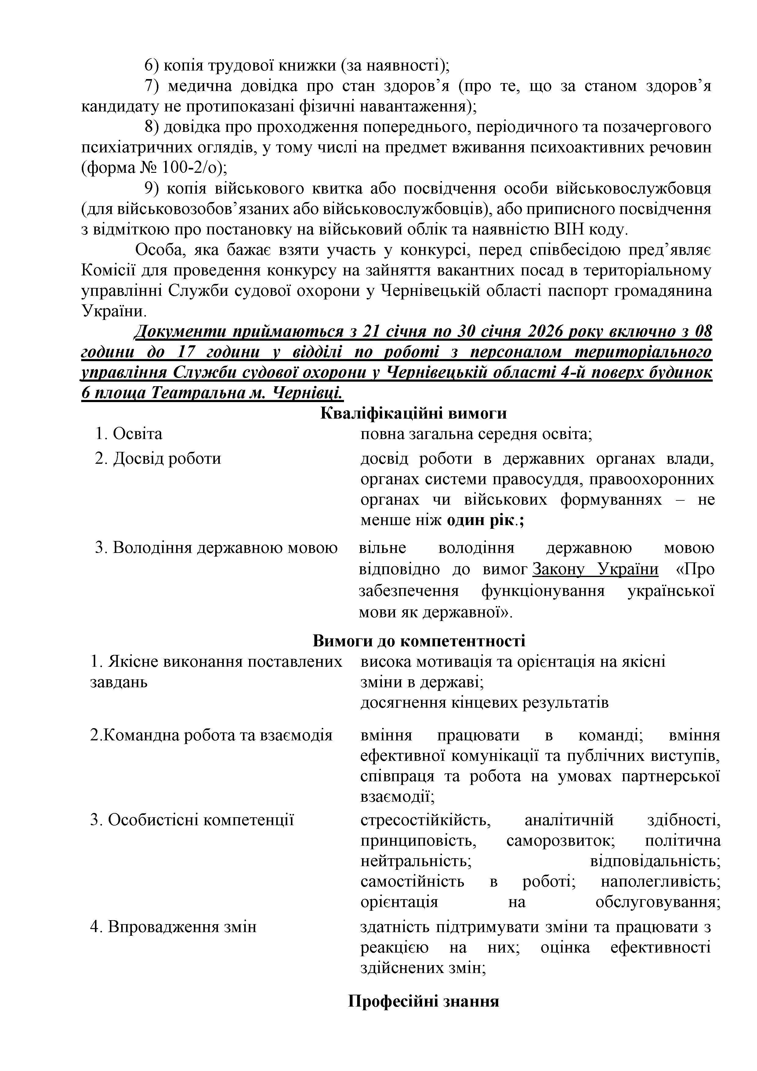 Оголошено конкурс на заміщення вакантних посад у територіальному управлінні Служби судової охорони у Чернівецькій області